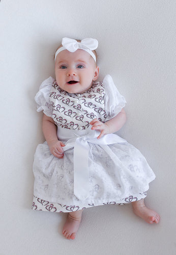 SALE!!!! Festliches Baby Dirndl Aileen aus Baumwolle mit einem Blumen Muster in rosa-weiß mit einer Schürze aus Spitze