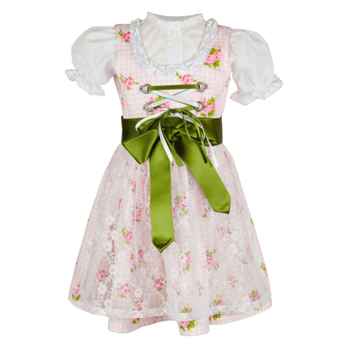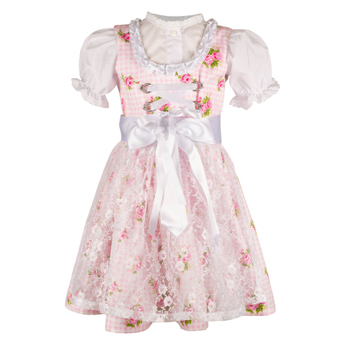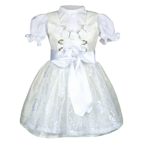 Festliches Baby/Kinder Dirndl Blümchen aus Seide mit Spitze für die Taufe, Hochzeiten oder andere Anlässe