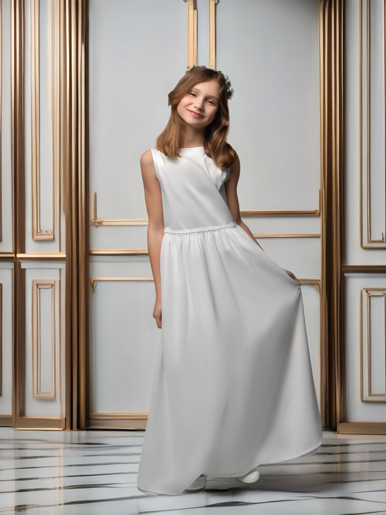 Ein wunderschönes, elegantes Kleid in zartem Ivory-Ton, ergänzt durch ein passendes Bolero-Jäckchen. Ideal für besondere Anlässe wie Erstkommunion, Taufe, Hochzeit (als Blumenmädchenkleid) oder Fotoshooting. Der fließende Rock und das schlichte Design verleihen dem Outfit eine zeitlose Eleganz, während das Bolero für zusätzlichen Komfort und Wärme sorgt.